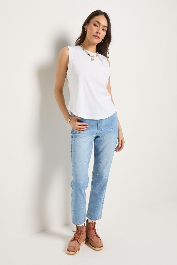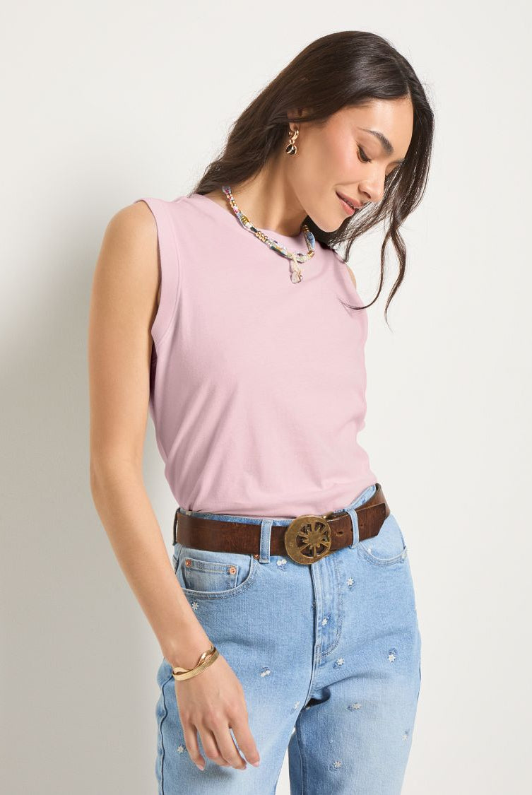 Clean, classic, 100% cotton. This is the kind of tank you’ll want in multiples. It’s what you reach for when everything else feels too “much.” A workhorse base layer for your fall looks that still stands strong solo on a sunny afternoon.