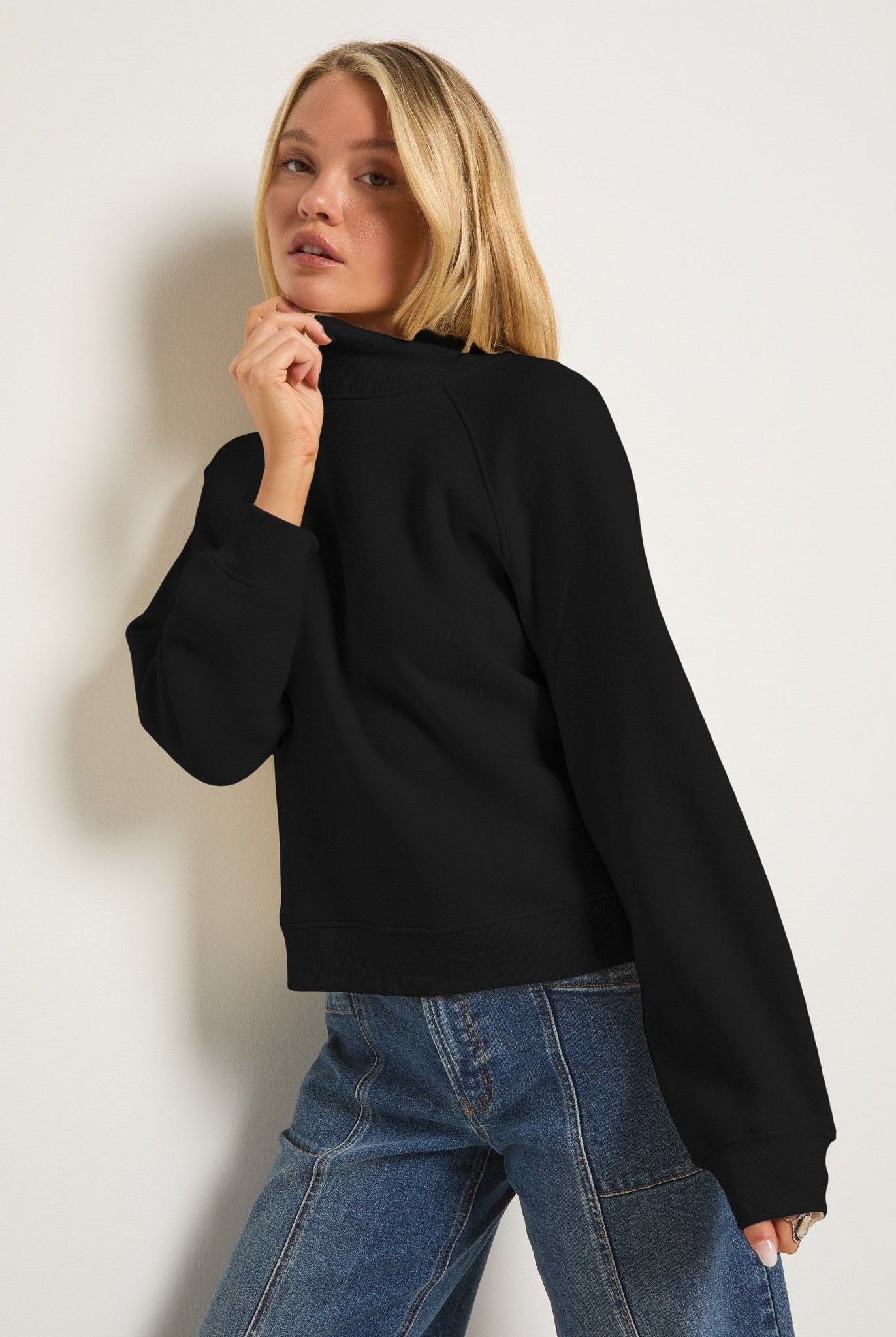 Not your average hoodie. The sweater knit and balloon sleeves make it feel more styled than sporty. Great for travel, layering, or throwing on when your outfit needs “just one more thing.” Looks equally good with trousers or over a dress.