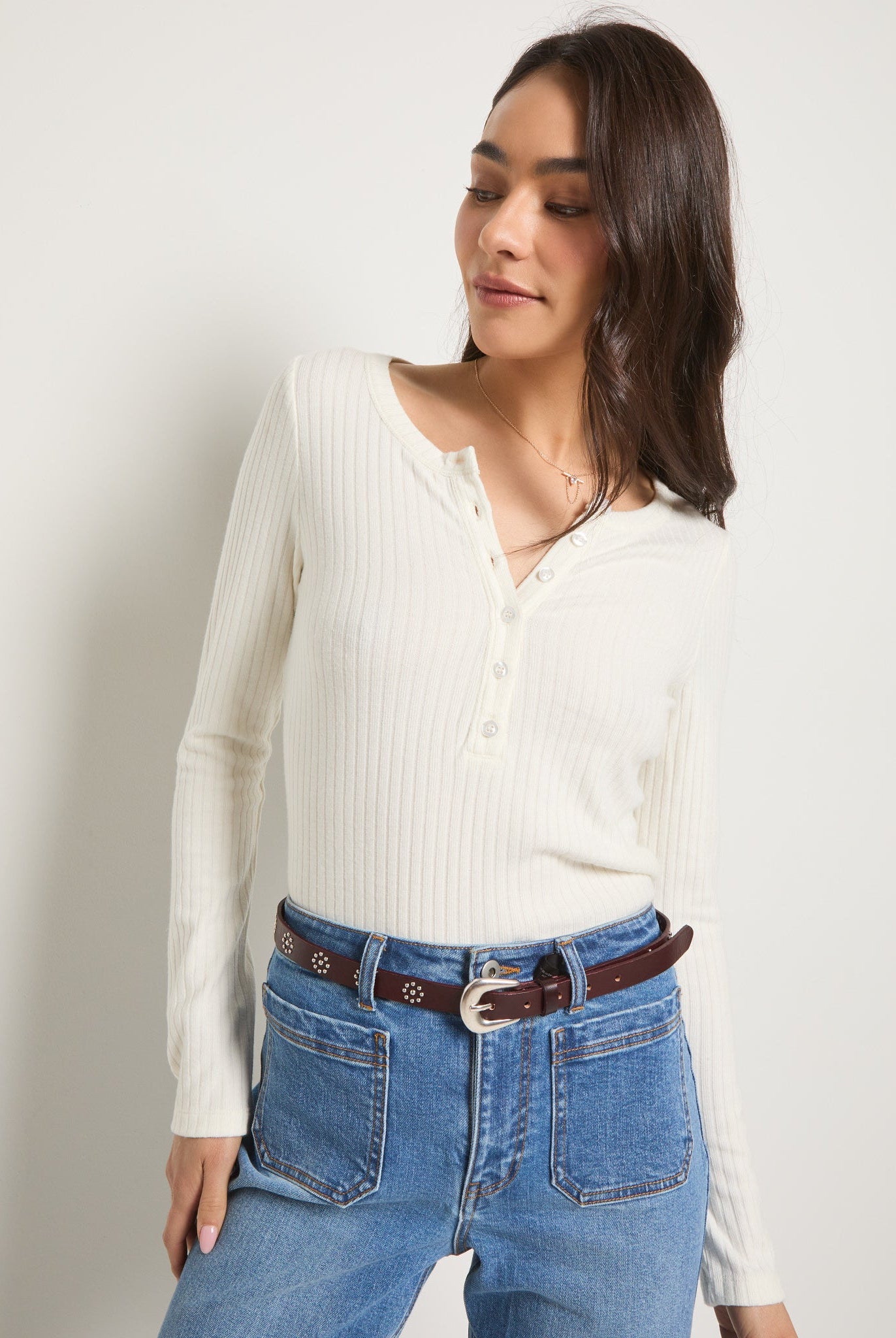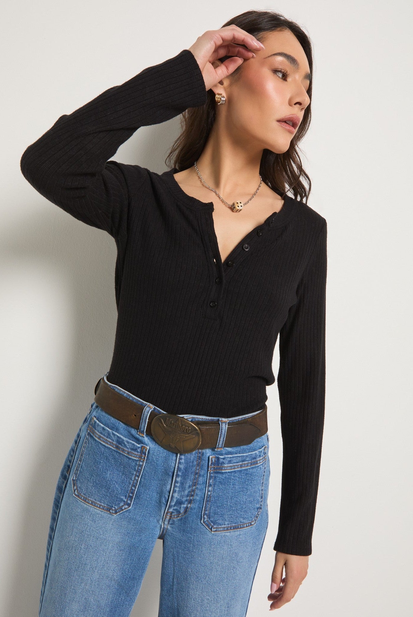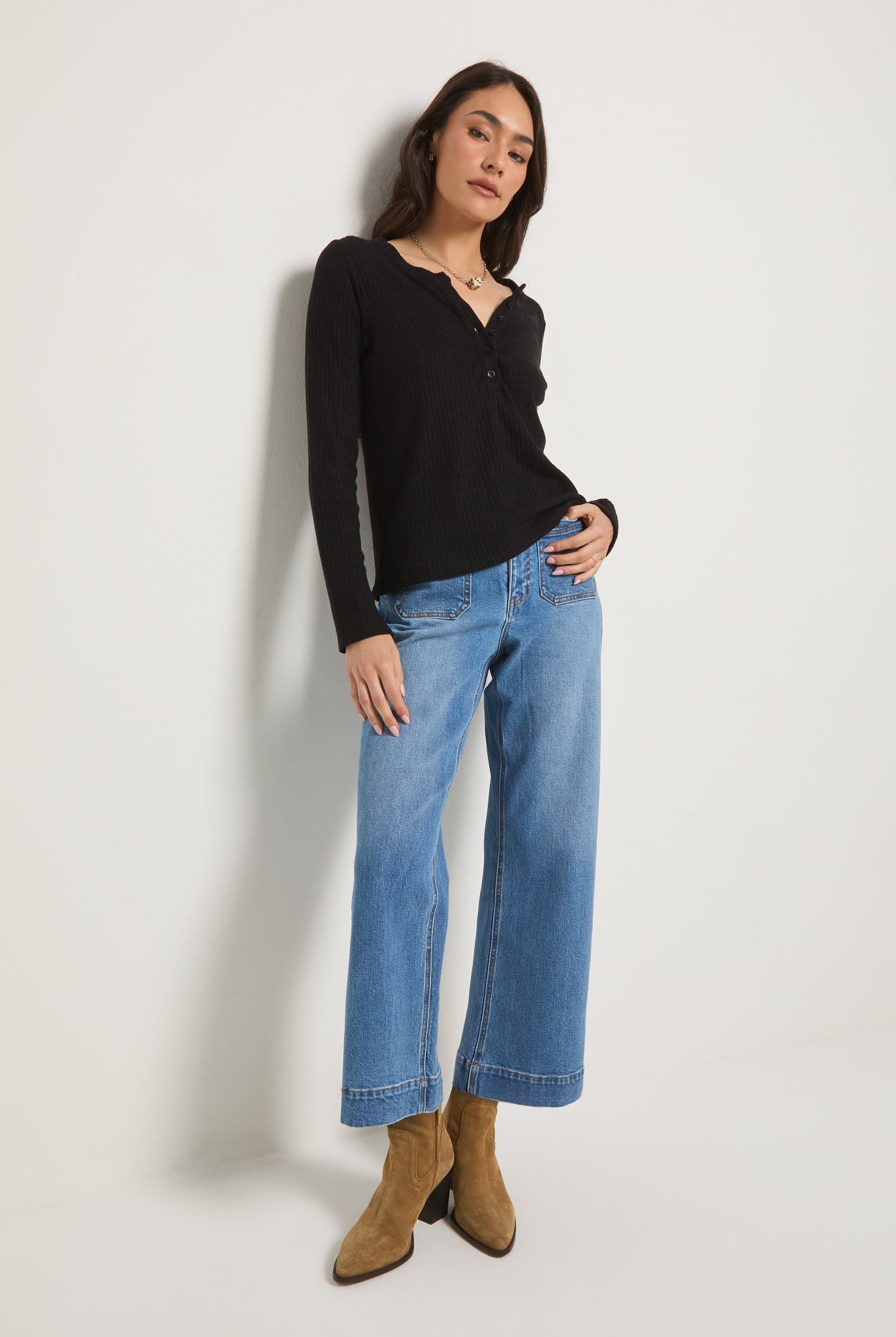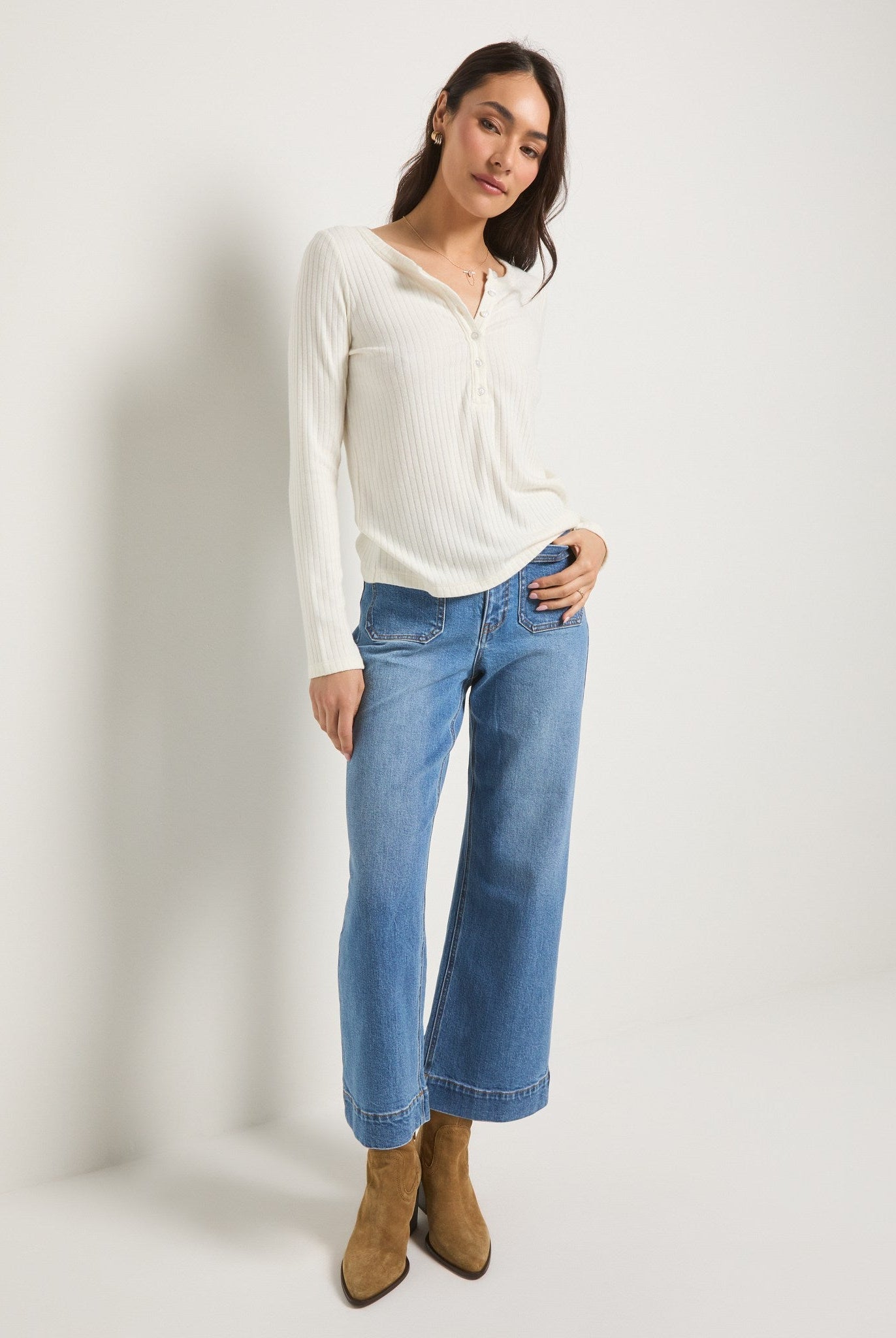 A capsule piece isn’t just about being basic, it’s about being dependable. The Autumn Henley is one of those magic layers that looks polished without feeling fussy. The textured knit adds depth, while the button neckline lets you style it multiple ways. Wear it tucked into trousers or open over a tank. It’s the kind of piece that grounds a look without ever feeling boring.