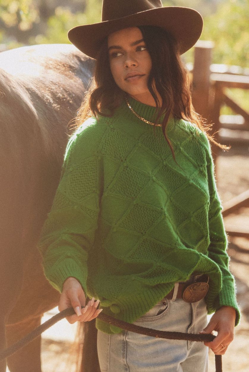 Countryside Sweater: Bright bobble-knit with covered buttons = your colorful statement.