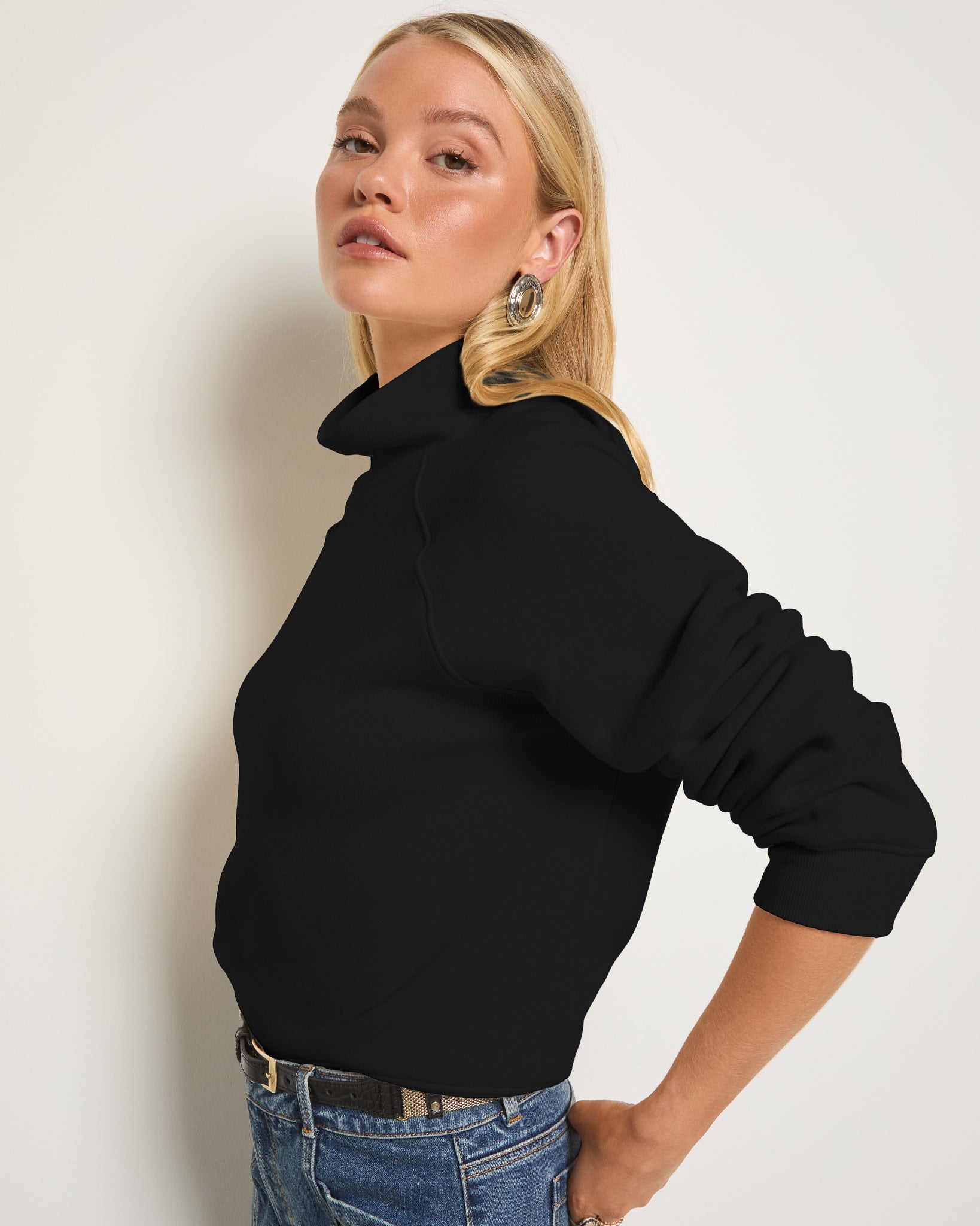 The kind of piece you’ll wear three days in a row and not feel bad about. Soft fleece, flattering neckline, and a slightly structured fit make it cozy and intentional. Your minimalist fall wardrobe will thank you.