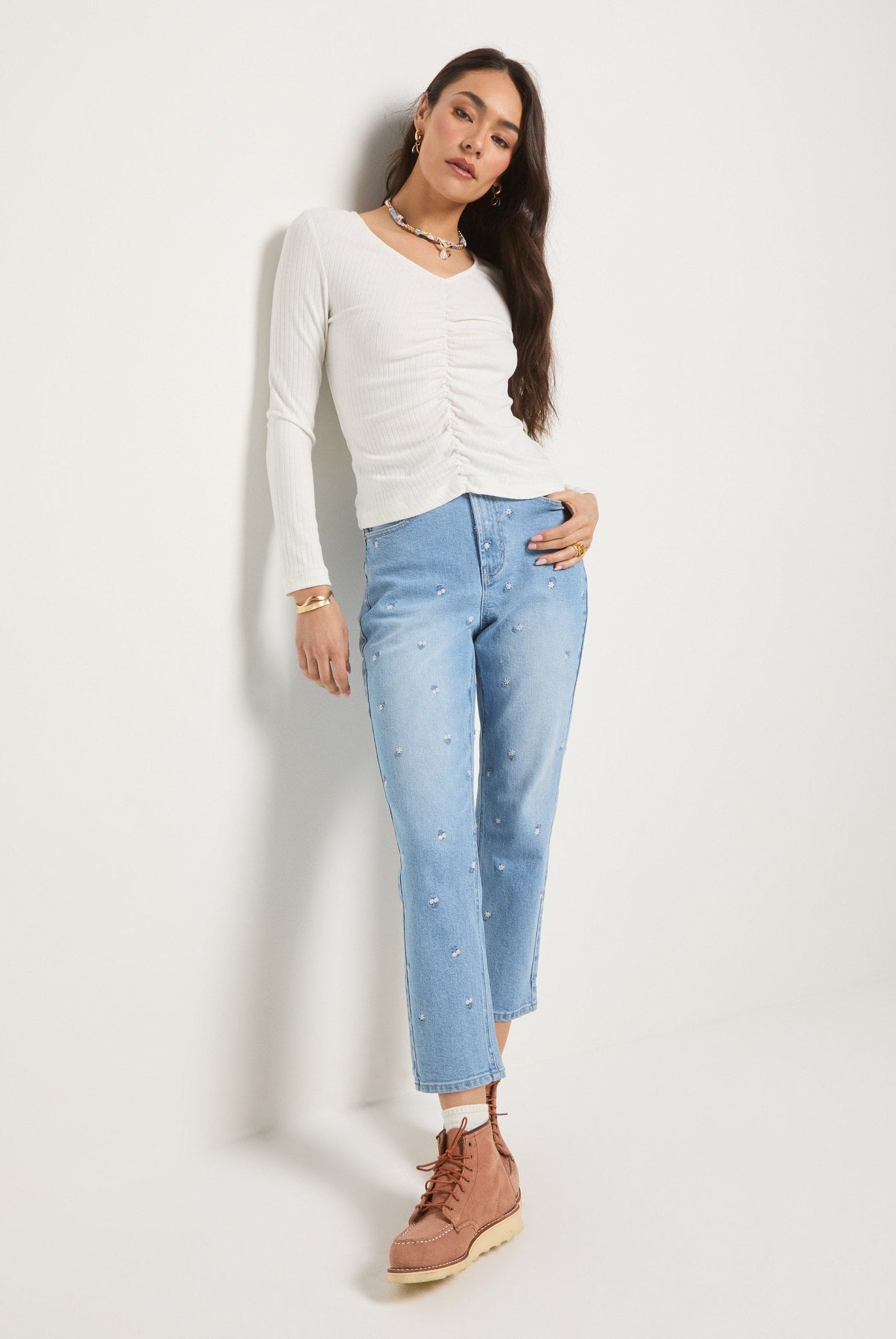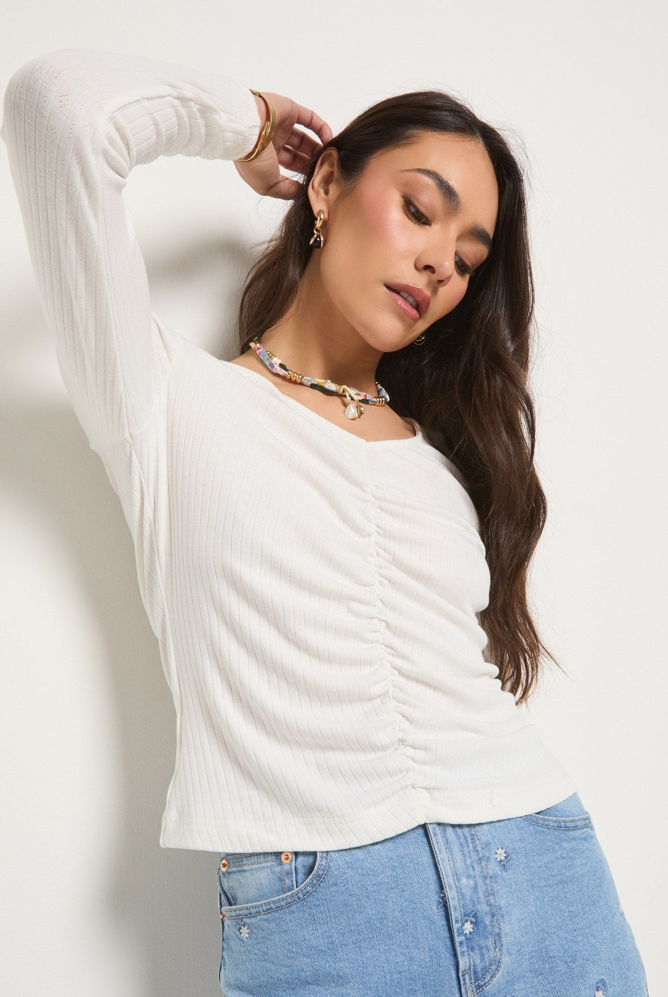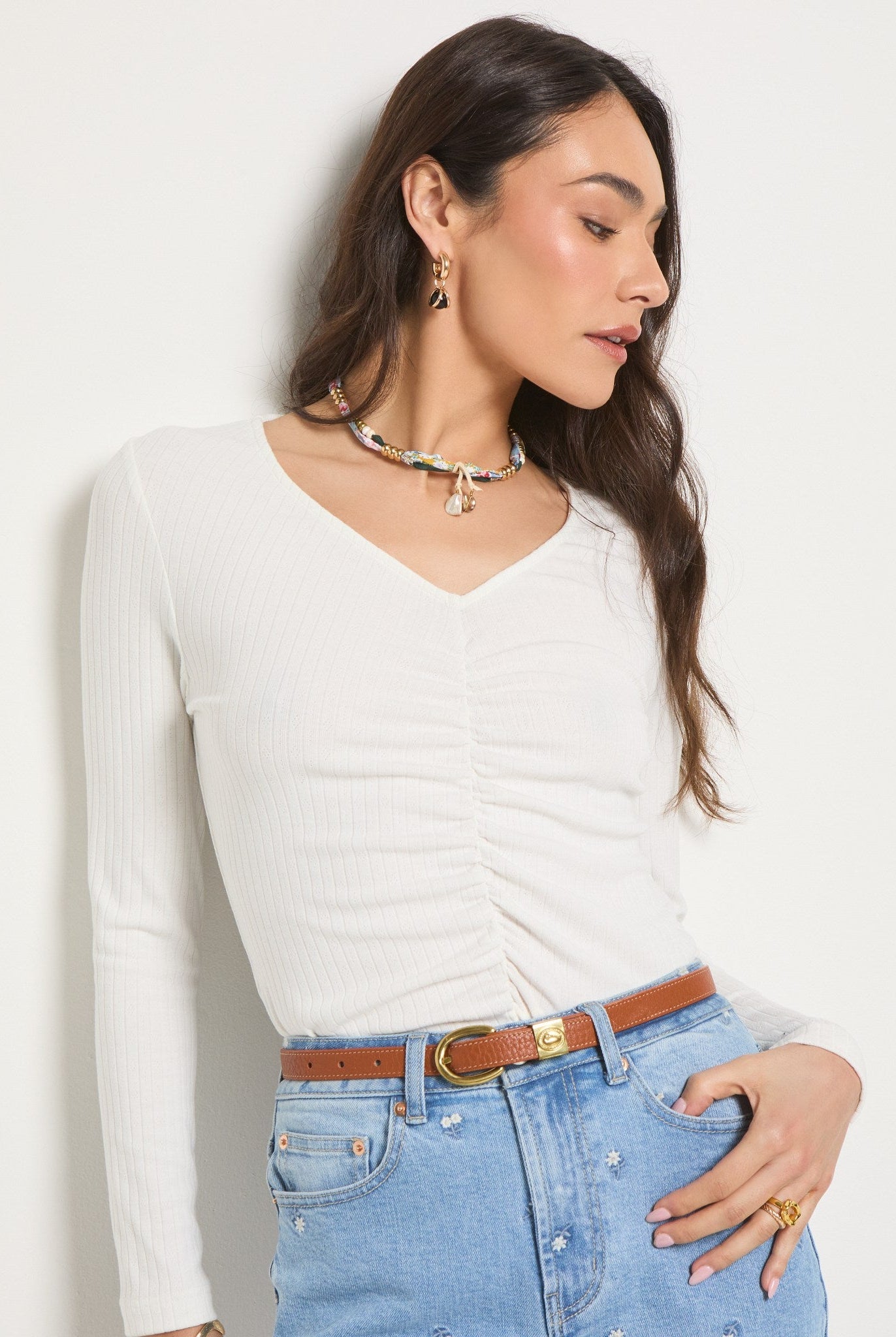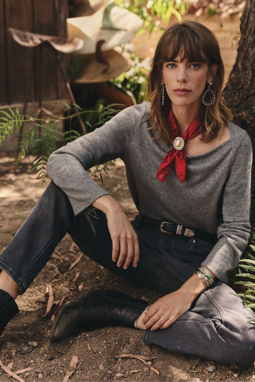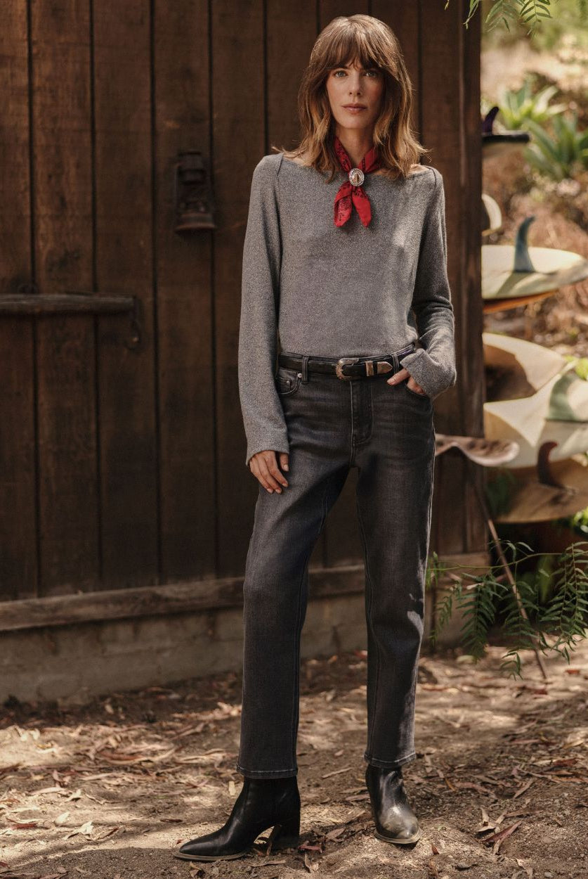 Grounded, moody, and quietly bold. Deep greys, like the Eden Boat Neck, are a great anchor for washed black denim or faded charcoal pants.