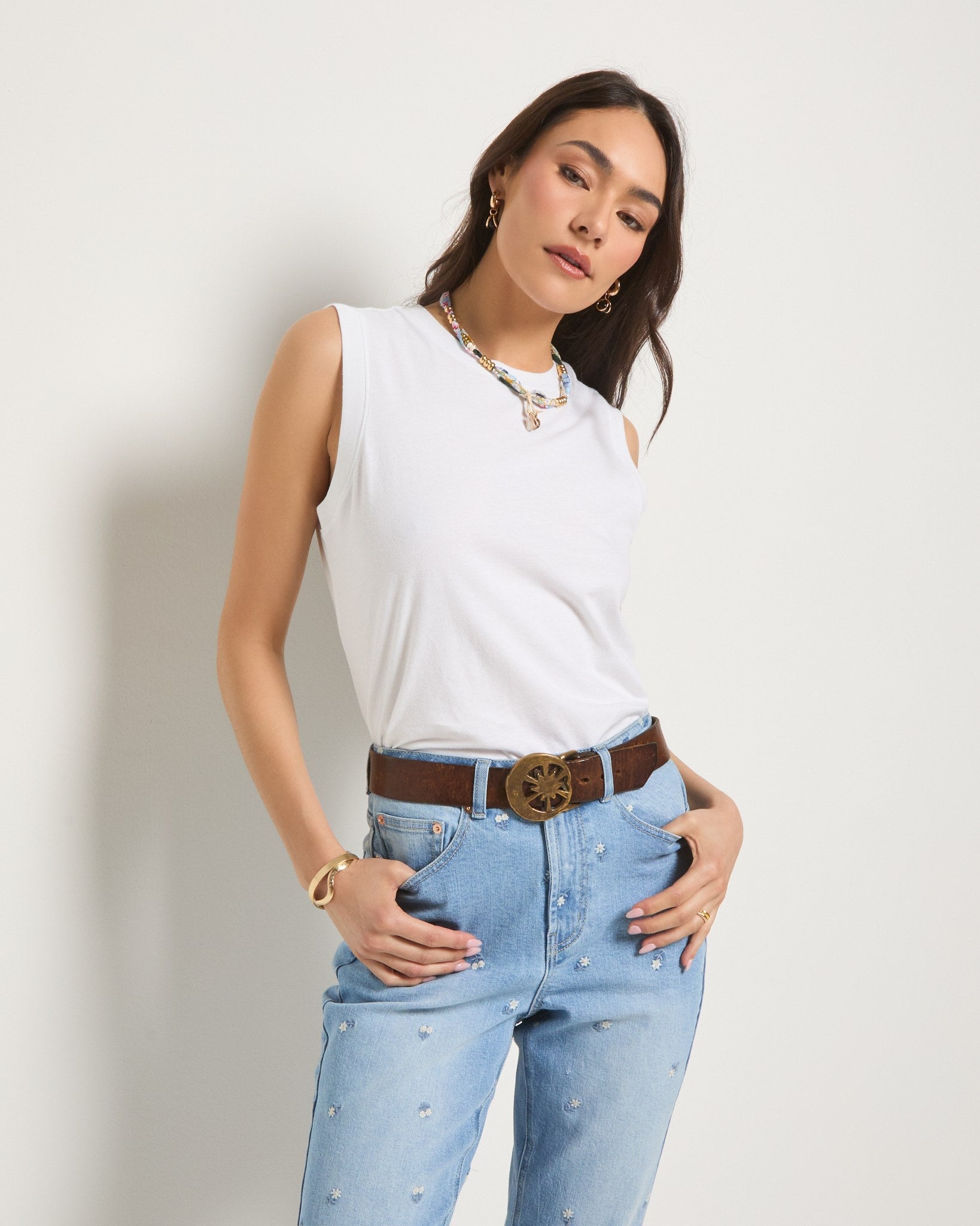 No fuss, all function. This 100% cotton tank does exactly what you want it to—fits well, feels soft, and plays nice with every other piece in your closet.
